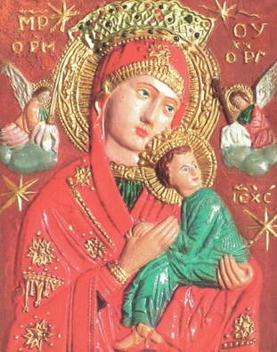 Одна женщина родом из Брянска, ныне живущая в Москве и имеющая дачу в Артемово, по окончании дачного сезона вернулась на свою московскую квартиру. В этот период жизни Валентину тяготили печали и скорби. Однажды она шла в унылом и подавленном состоянии по одной из улиц Москвы, погода была подстать ее настроению – промозглый дождь и ветер. Осень властвовала над городом. Серый тротуар, казался ей без конца и края, и вот неожиданно, взгляд ее упал на довольно крупную икону, прислоненную к фонарному столбу. Машины, проезжавшие мимо, обдавали брызгами грязи из-под колес святой образ. Она взяла свою находку и поспешила домой, где после удаления грязи стало видно – это икона Божией Матери. Определить, какой образ Царицы Небесной она принесла домой, женщина не могла. Любовь нашего народа к Богородице выражается, в том числе, множеством почитаемых икон Матери Божией, но не каждый православный знает наизусть все иконы, которые изображают нашу Заступницу. Возник вопрос, куда поместить обретенный образ, и Господь внушил Своей рабе, как поступить ей с найденной иконой… Во время молитвы Валентина вспомнила, что в деревне, где она имеет дачу, созидается храм, и там нет еще ни одной иконы, и ее дар туда был бы наиболее целесообразным. Недолго думая, завернув образ в ткань, женщина повезла его в Артемово. Так случилось, что ее приезд совпал с собранием, где в очередной раз православные обсуждали название будущего храма – обсуждавшийся вопрос разрешился сам собой. Как только сверток был развернут, так члены церковной общины были поражены, увидев Страстной Образ Царицы Небесной.