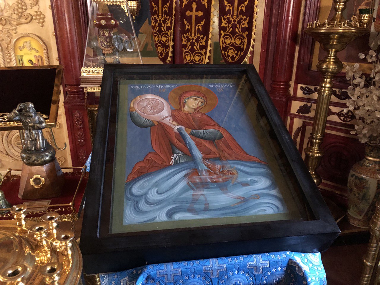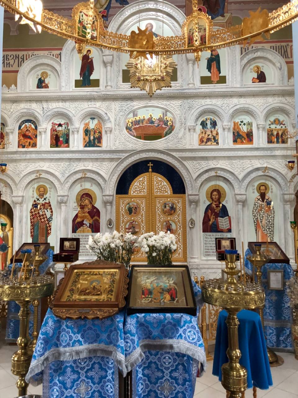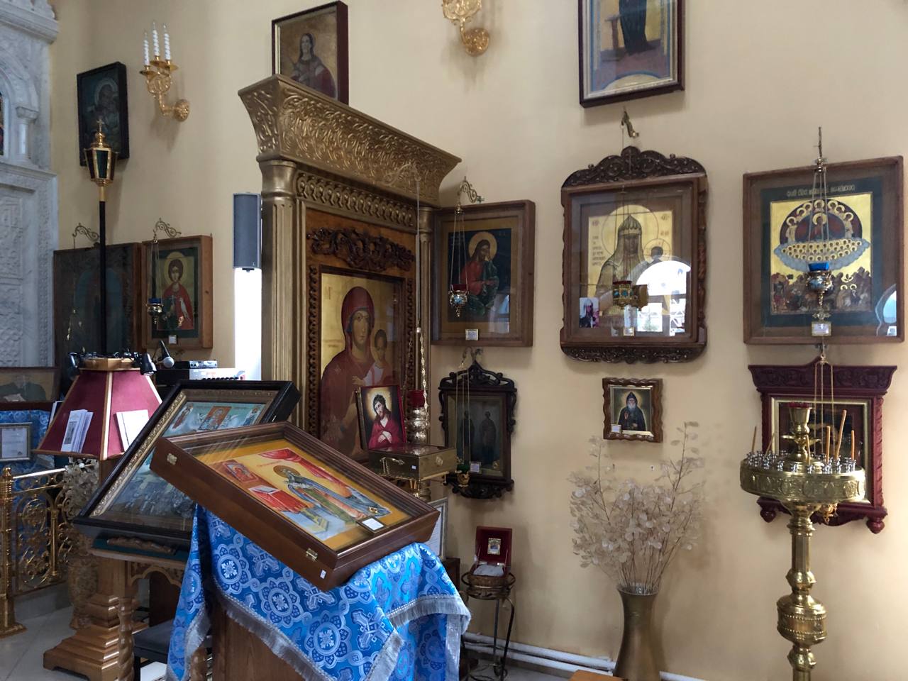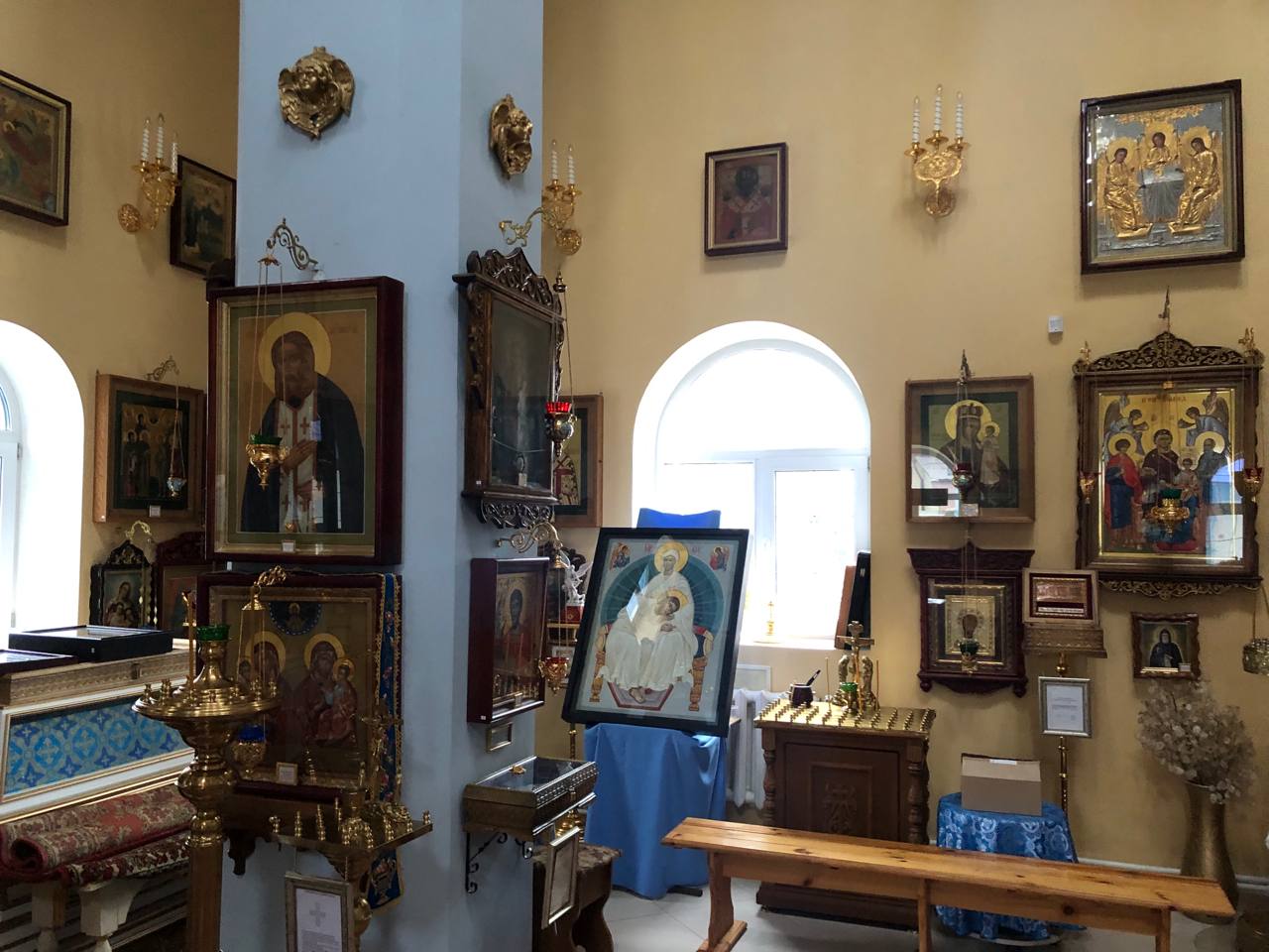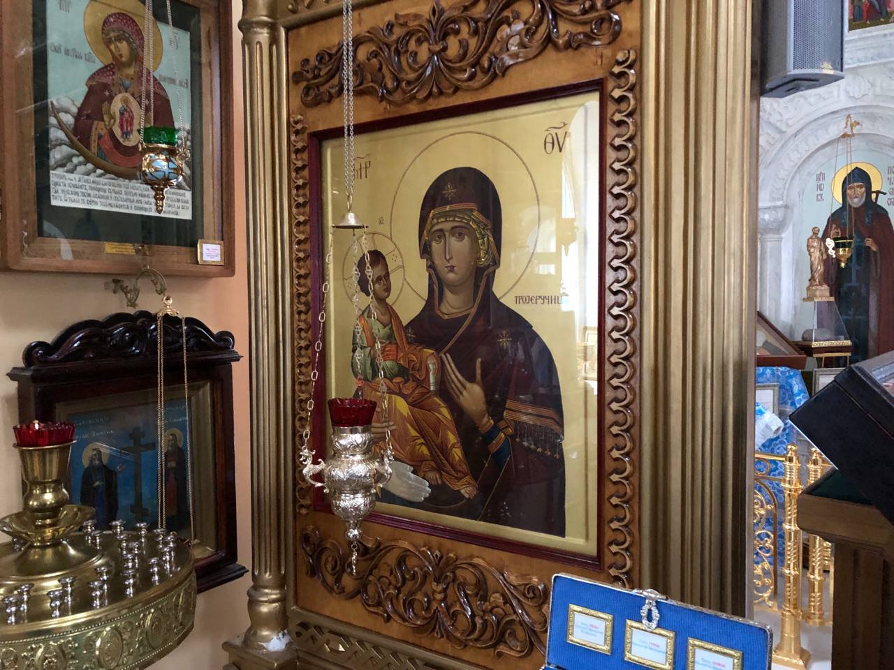 Среди особо чтимых святынь храма можно назвать старинную храмовую икону «Явление Божией Матери на Почаевской горе», а также икону «Явление Божией Матери в Тервеничах», переданную в дар приходу Тервеническим женским монастырем Санкт-Петербурской митрополии. Помимо этого в храме пребывают частицы святых мощей Почаевских подвижников благочестия - преп. Иова и преп. Амфилохия.