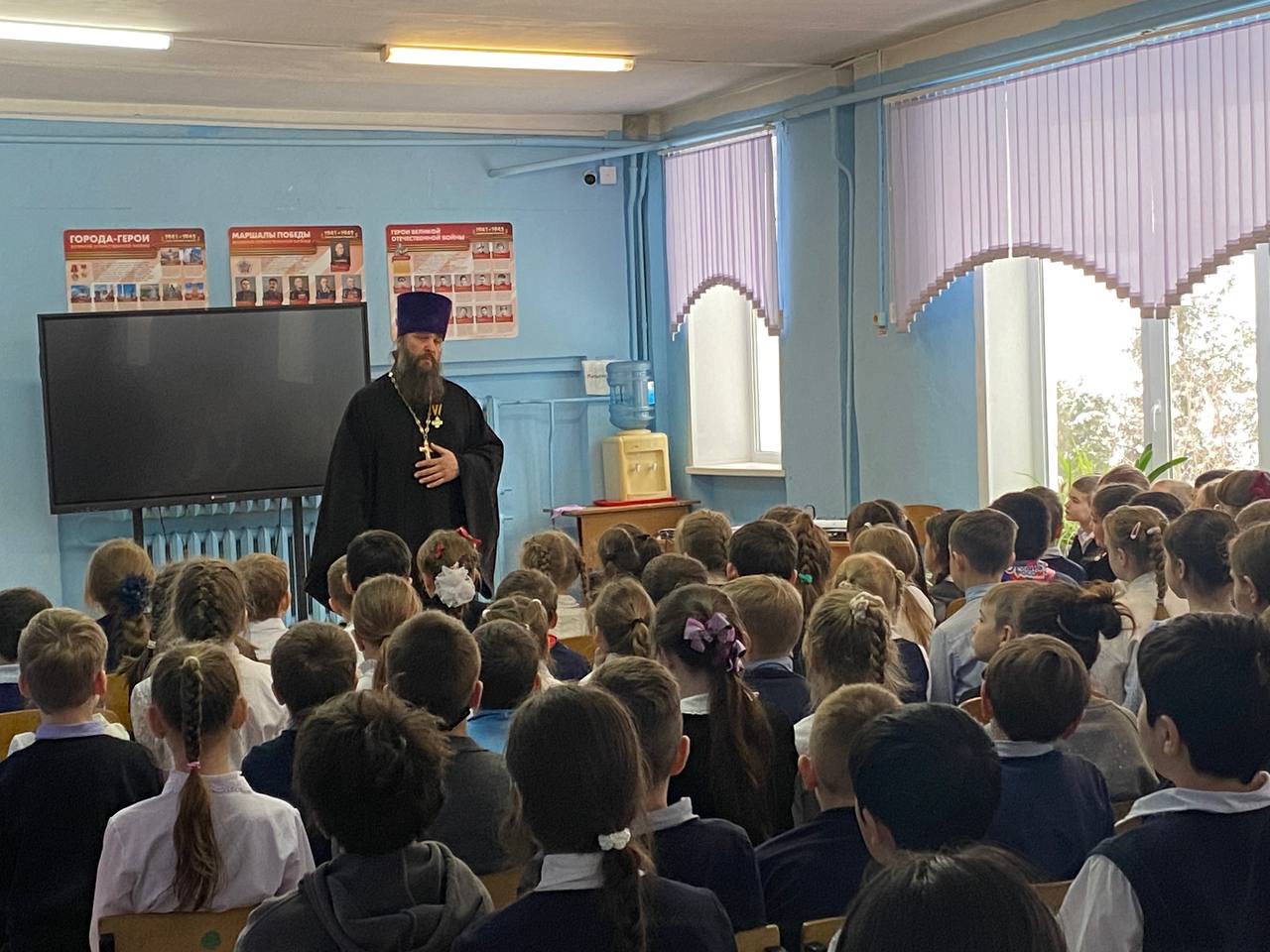 6 февраля встреча клирика Страстного храма иерея Георгия Парамонова с учениками 2-й общеобразовательной школой начальные классы. Тема: "Рождество, Крещение Господне"
