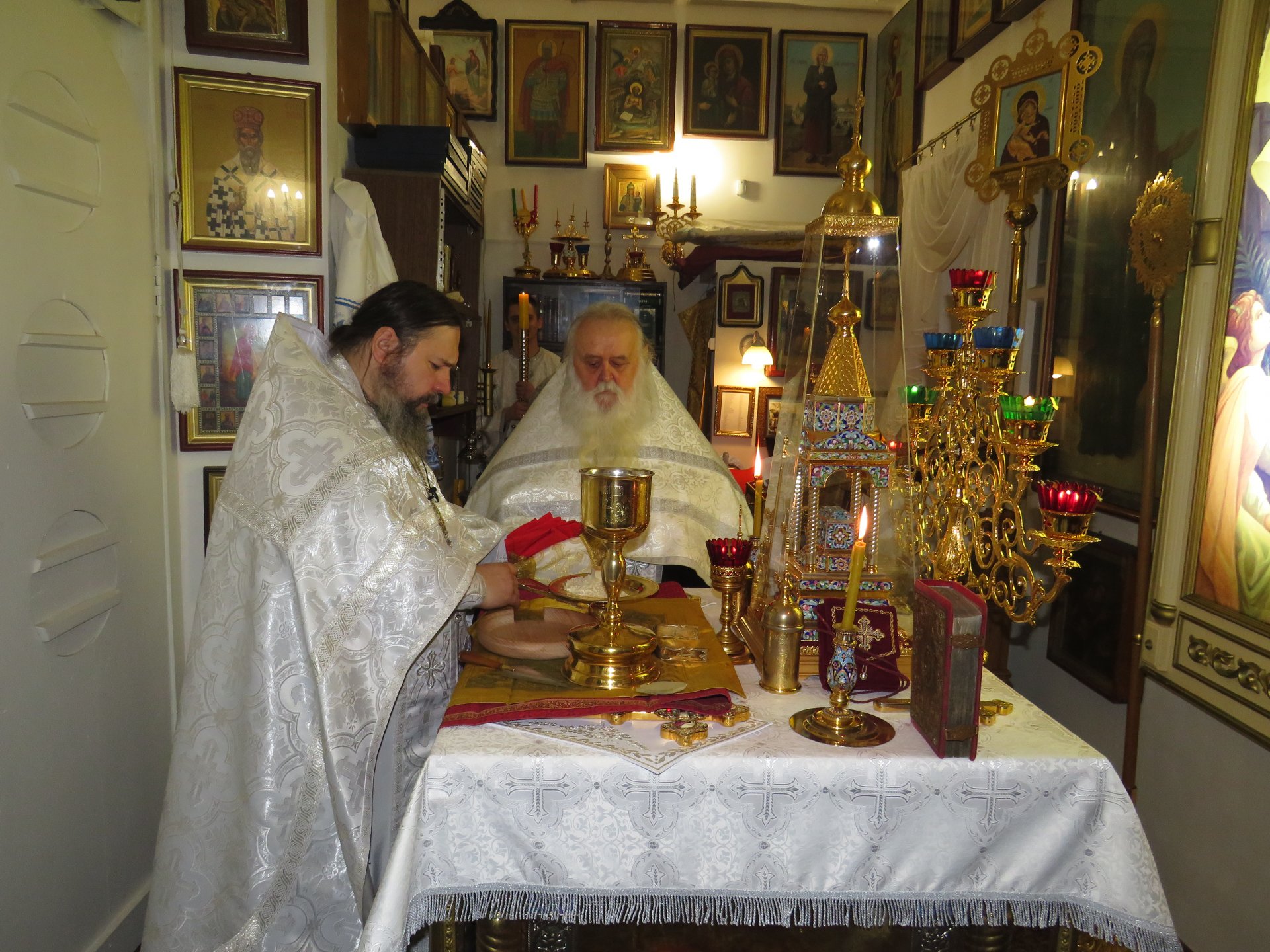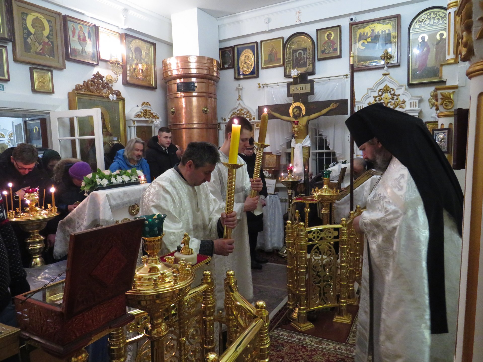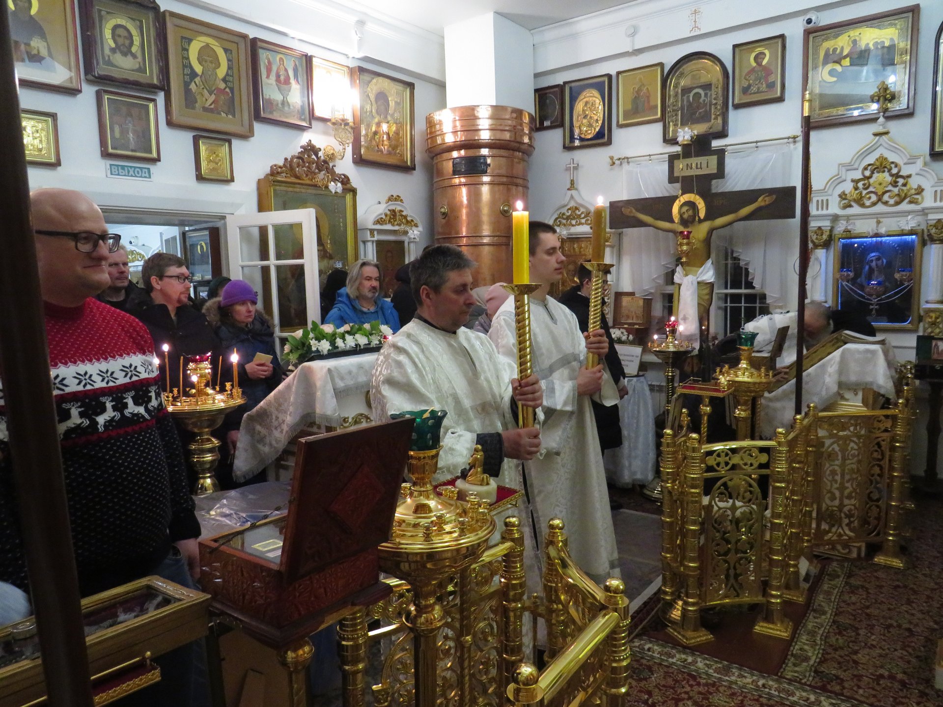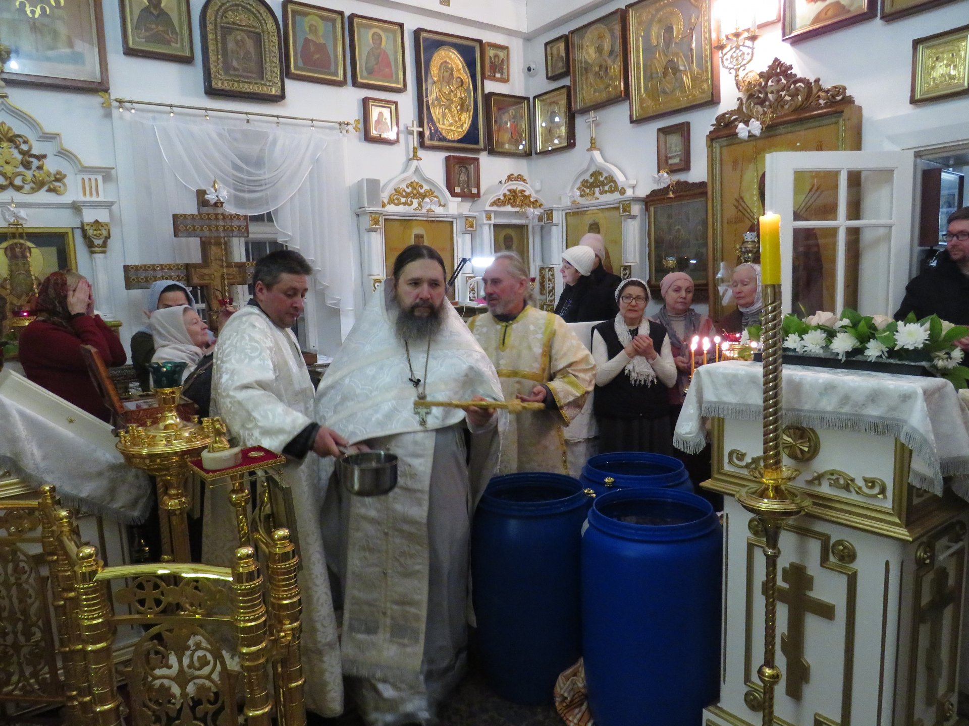 Главная > Медиа > Фотогалерея > 19 января Крещенский Господе. В Спасском храме усадьбы «Мураново» Великое освящение воды в храме; Крестный ход и Великое освящение воды на святом Казанском источнике д.Мураново