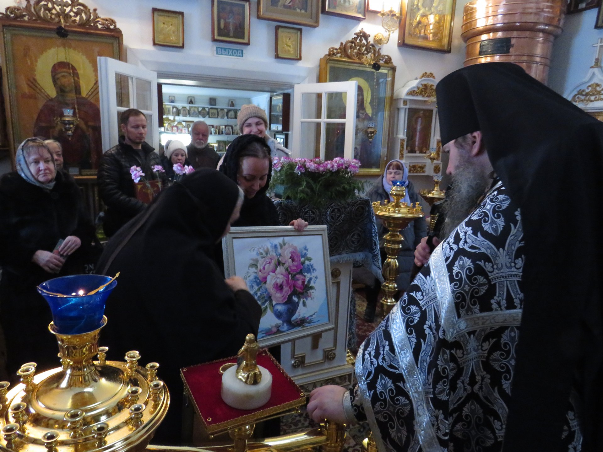 По окончании богослужения прихожане и военнослужащие Софринской Бригады поздравили настоятеля игумена Феофана (Замесова) с 20-летием назначения священника на приход – указ был подписан митрополитом Крутицким и Коломенским Ювеналием 23 февраля 1998 года.