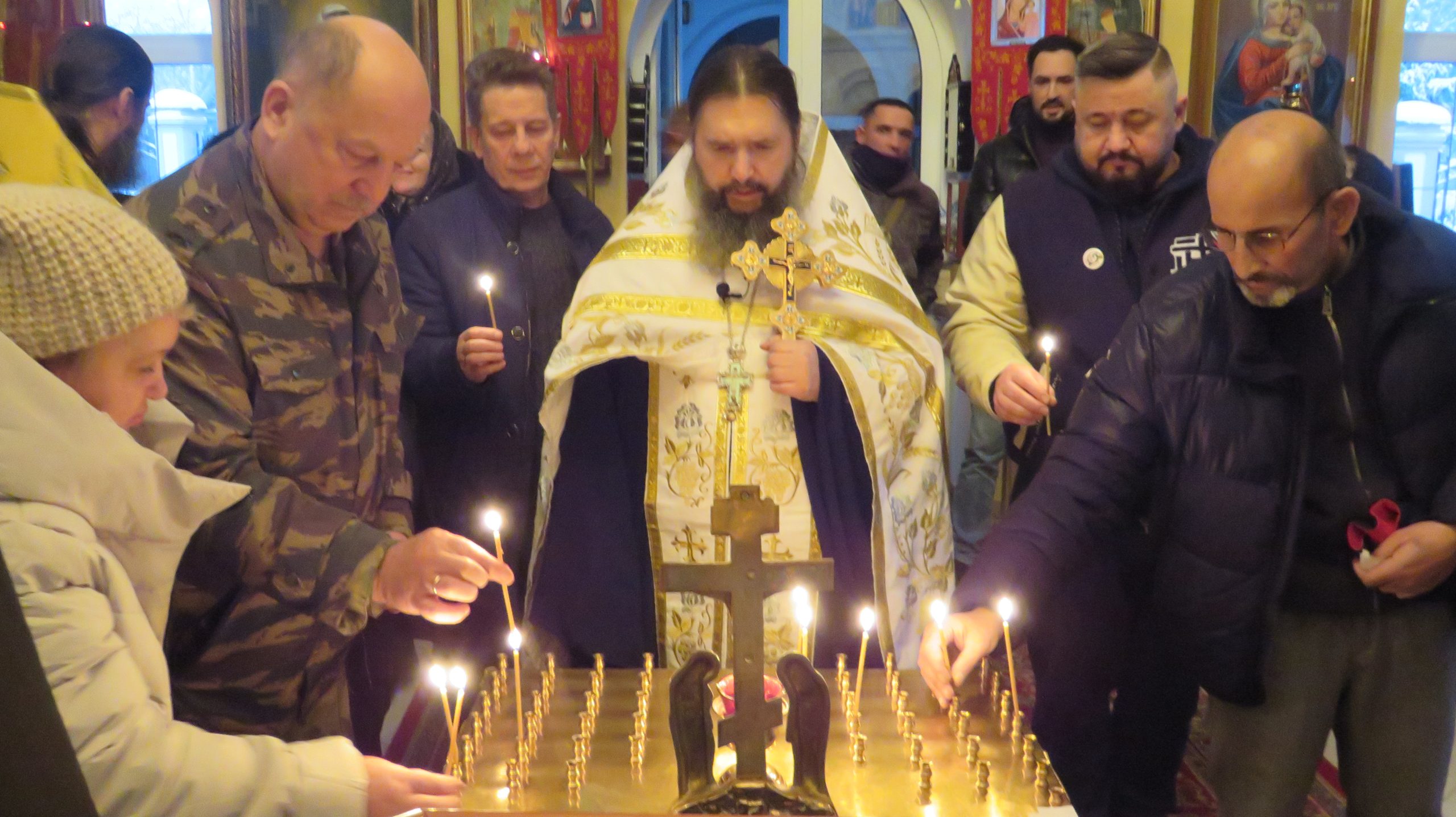 Игумен Феофан принял гостей в Почаевской церкви д. Артёмово, где ознакомил их с историей прихода и со святынями, пребывающими в этом храме. Затем участники встречи во время молебна святому великомученику Георгию Победоносцу совместно помолились о всех Российских воинах, находящихся в зоне СВО, и о даровании победы в борьбе с современным нацизмом.