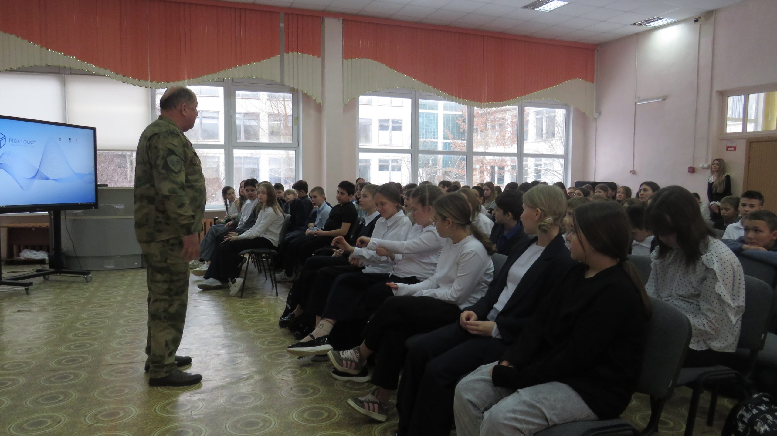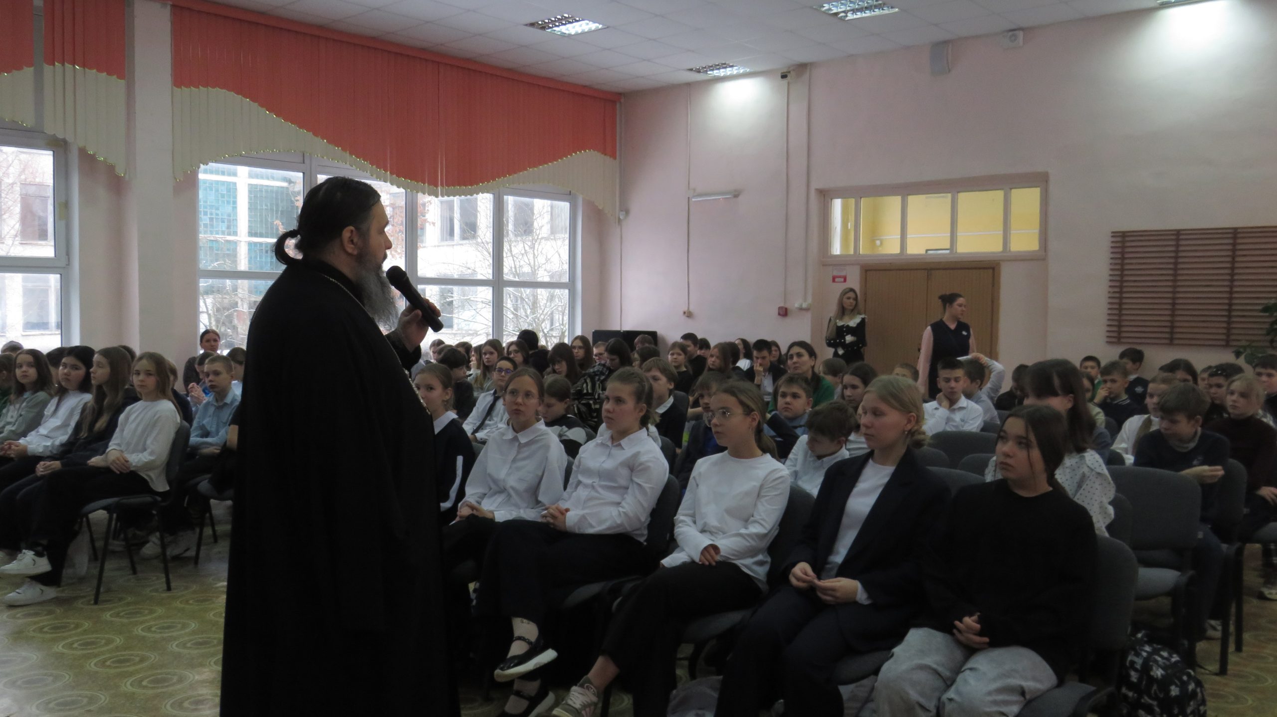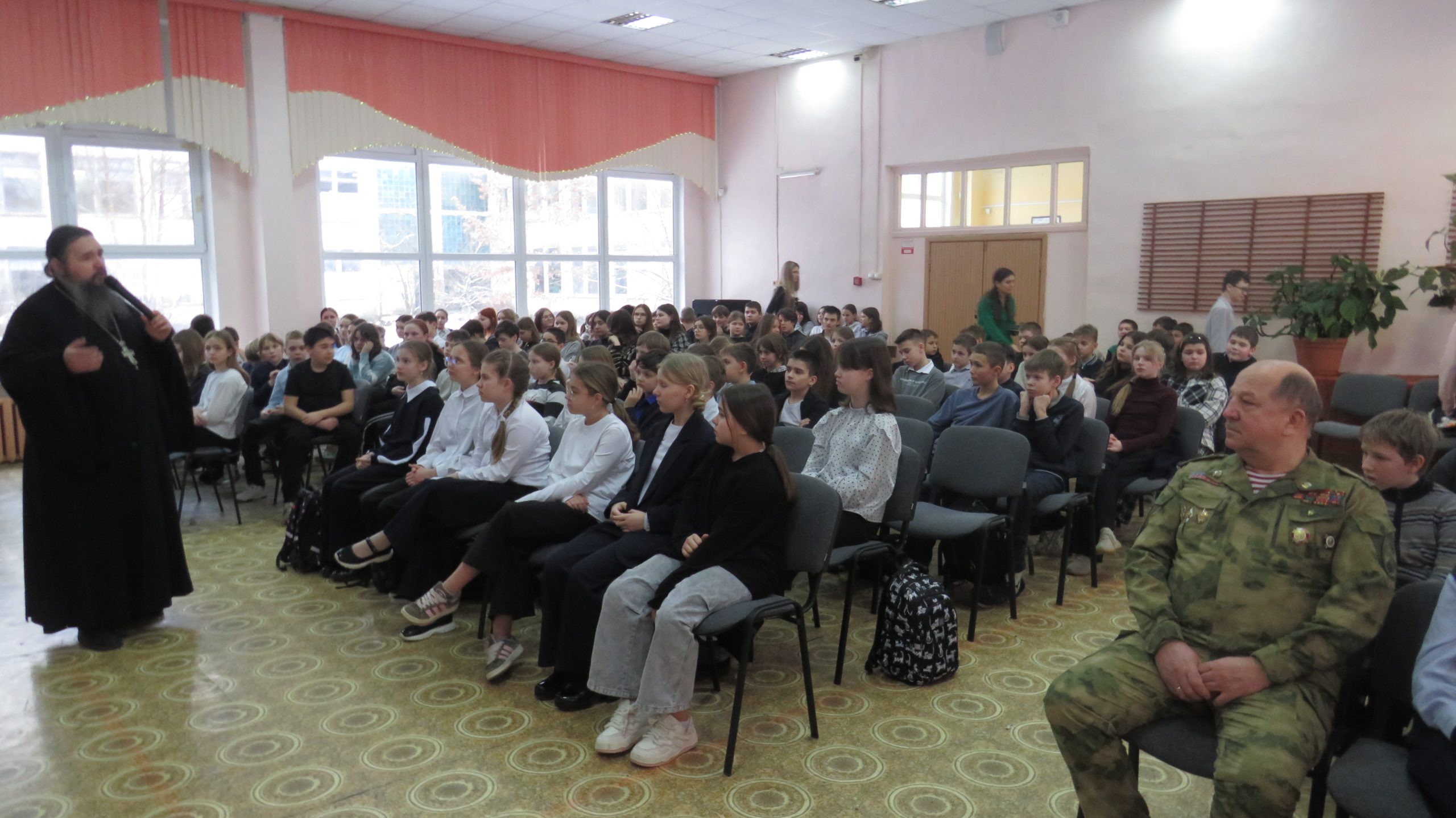 4 февраля в среду Председатель Отдела по взаимодействию с Вооруженными Силами, правоохранительными органами и казачеством Сергиево-Посадской епархии совместно с Заместителем Председателя Совета ветеранов Софринской Бригады Войск Национальной Гвардии России полковником Политыло Я.Н. провел встречи с учащимися трех общеобразовательных школ, две из которых расположены в пос. Софрино (Софринская 1-ая и Софринская 2-ая школы) и одна находится в п. Ашукино.
