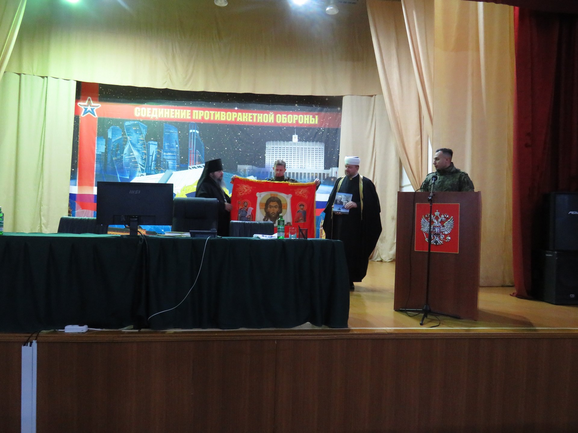 Закончился осенний призыв в армию и учитывая, что среди воинов нового призыва, поступивших в 9-ую Дивизию ПРО ВКС, значительное количество юношей-мусульман, по приглашению помощника командира по взаимодействию с верующими военнослужащими игумена Феофана (Замесова), 10 февраля в актовом зале войскового клуба с военнослужащими, исповедующими ислам, встретился имам–мухтасиб Пушкинского округа Рамиль хазрат Фасхутдинов.