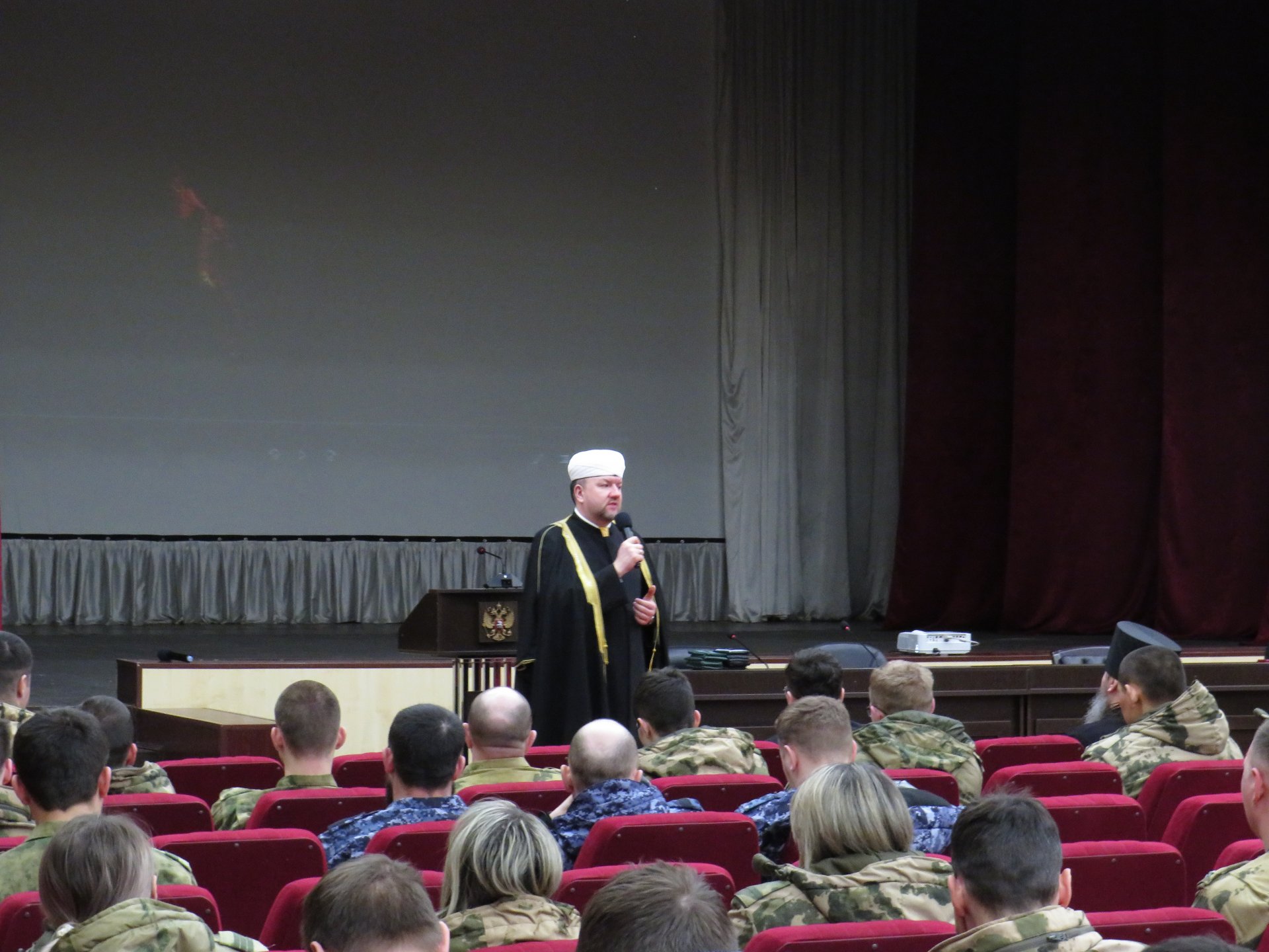 Он рассказал защитникам Отечества о верном отношении воина-мусульманина к воинской службе и армейским обязанностям, к сослуживцам и начальникам, а также коснулся вопросов братской взаимовыручки и помощи в коллективах, взаимоотношений защитников Отечества, исповедующих различные традиционные религии, и, что весьма немаловажно, корректного отношения руководителей к своим подчиненным.