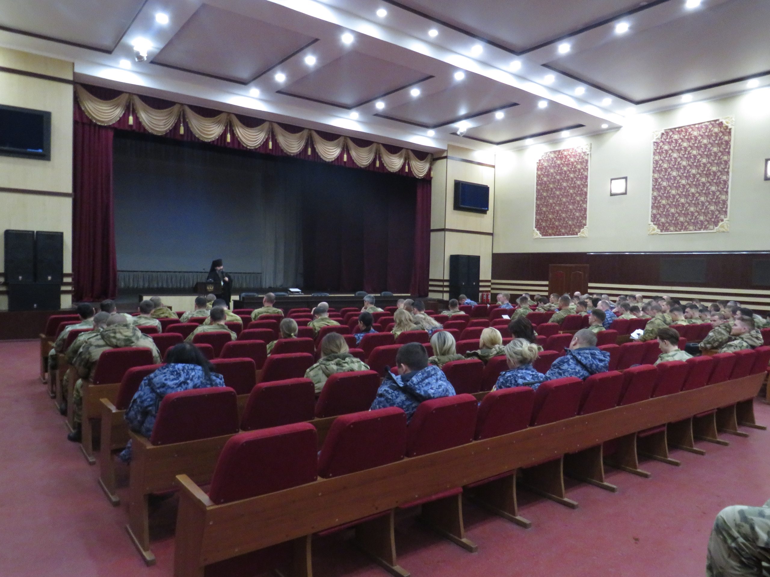 Встреча была посвящена тематике противодействия противоправным действиям в воинских коллективах, а также своевременного предотвращения употребления алкоголя и различных запрещенных веществ. Выступая перед военнослужащими, каждый из представителей силовых структур, постарался до участников встречи понимание важности соблюдения защитниками Отечества законодательных норм, установленных в государстве. Воинам были представлены различные жизненные примеры, свидетельствующие о последствиях правонарушений, совершаемых военнослужащими в ходе воинской службы, а также озвучены способы предотвращений подобных происшествий. Игумен Феофан в своем слове ознакомил воинов с духовной оценкой негативных поступков человека и напомнил об ответственности перед людьми и Богом, которую несет каждый человек за совершенные им ошибки. Он также озвучил воинам способы противодействия греховным мыслям и желаниям, которые может ощутить в себе каждый человек.