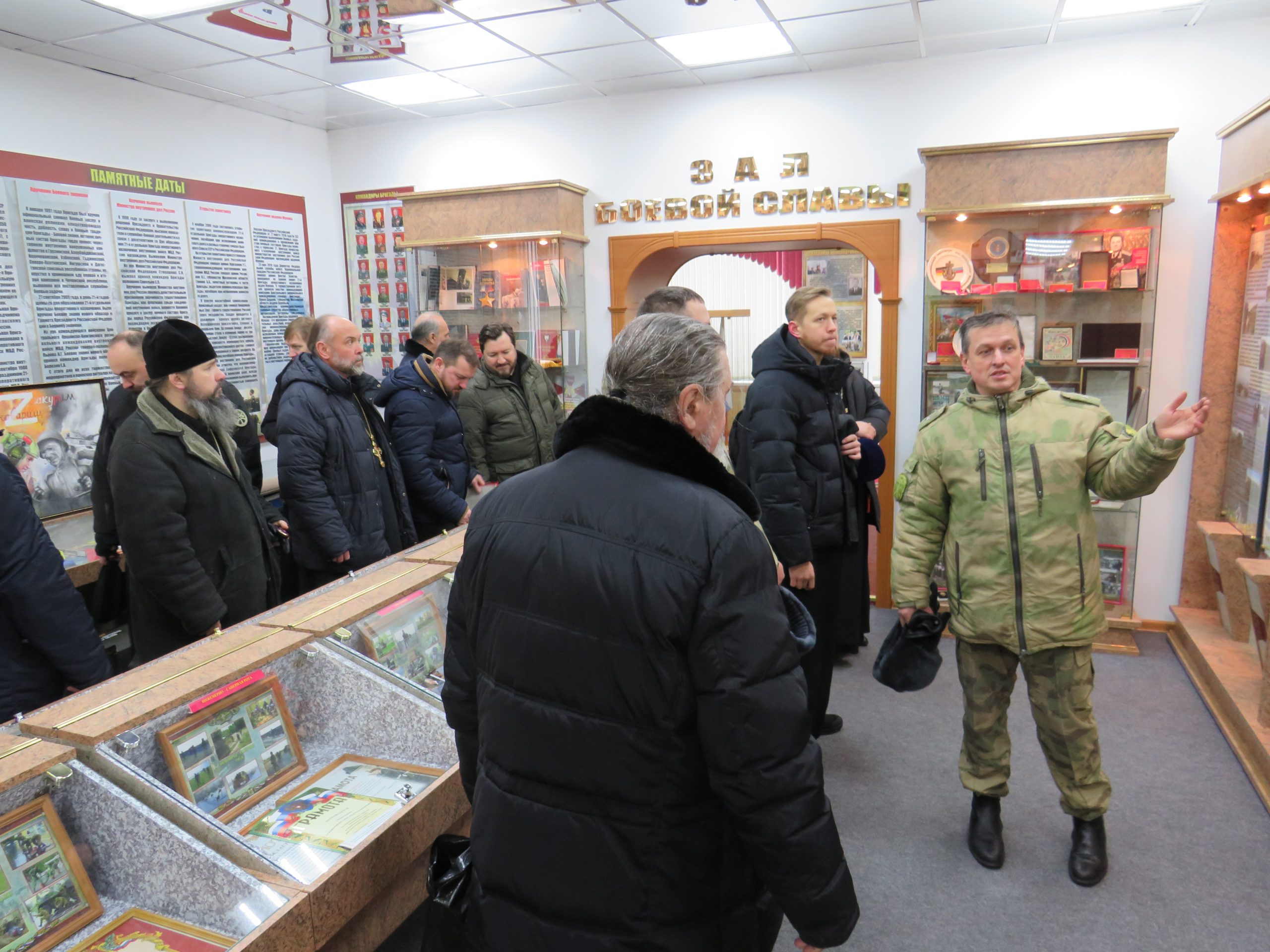 11 декабря в понедельник в Сергиево-Посадской епархии состоялось годовое собрание священнослужителей, ответственных в благочиниях за взаимодействие с силовыми структурами и казачеством. Встреча военного духовенства прошла в расположении Софринской ордена Жукова бригады оперативного назначения Войск Национальной Гвардии России (в/ч 3641). Мероприятие началось с заупокойной литии по погибшим защитникам Отечества в Александро-Невском храме, расположенном на территории войсковой части, и сооруженном в память об убиенных воинов. Председатель епархиального Отдела по взаимодействию с Вооруженными Силами, правоохранительными органами и казачеством, ответственный за пастырское окормление Софринской Бригады игумен Феофан (Замесов) рассказал участникам сборов об истории создания данной войсковой церкви и о прибывающих здесь святынях. Из храма священнослужители прошли на территорию бригады к мемориалу погибшим воинам, почтили их подвиг минутой молчания, возгласили «Вечную память» и возложили цветы. Далее для участников собрания была проведена экскурсия по музею боевой славы Софринской Бригады, показан фильм об истории этой легендарной части и вручены памятные подарки. Затем военным пастырям были представлены следующие выступления: доклад протоиерея Александра Азарова о формах окормления казачества в Сергиево-Посадской епархии и доклад священника Владимира Фёдорова о духовной работе в структурах МВД так же в масштабах епархии. Председатель Отдела игумен Феофан ознакомил собравшихся с новыми направлениями деятельности возглавляемой им структуры, озвучил рекомендации священноначалия и вручил каждому из священнослужителей благодарственные письма за жертвенное служение Отечеству за подписью командира бригады Героя России полковника С.Р. Хайрутдинова . Затем участники мероприятия встретились с Председателем Совета Ветеранов Бригады подполковником Любимовым В.В. и обсудили вопросы пастырской работы в зоне СВО и доставки в данный регион грузов гуманитарной помощи. По итогам собрания было принято решение подготовить правящему архиерею доклад, отражающий деятельность Отдела в 2023г, а так же проработать планы на предстоящий период. Участники сборов отметили весьма важный момент: подобные встречи помогают военным пастырям обмениваться накопленным опытом работы, связанной с духовным окормлением защитников Отечества.