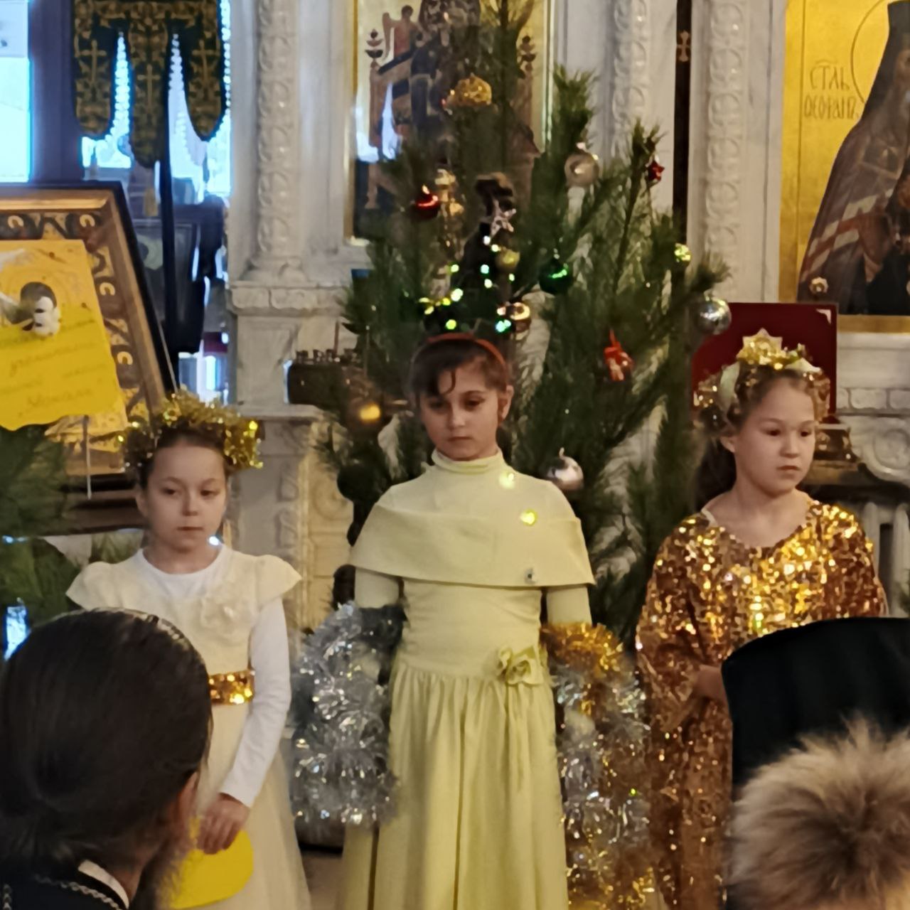 В начале праздника школьники пропели тропарь Рождества Христова. Звучали также стихи и песни.