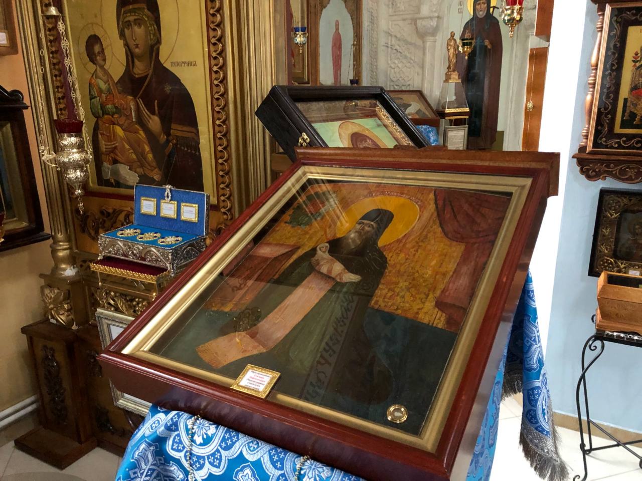Среди особо чтимых святынь храма можно назвать старинную храмовую икону «Явление Божией Матери на Почаевской горе», а также икону «Явление Божией Матери в Тервеничах», переданную в дар приходу Тервеническим женским монастырем Санкт-Петербурской митрополии. Помимо этого в храме пребывают частицы святых мощей Почаевских подвижников благочестия - преп. Иова и преп. Амфилохия.