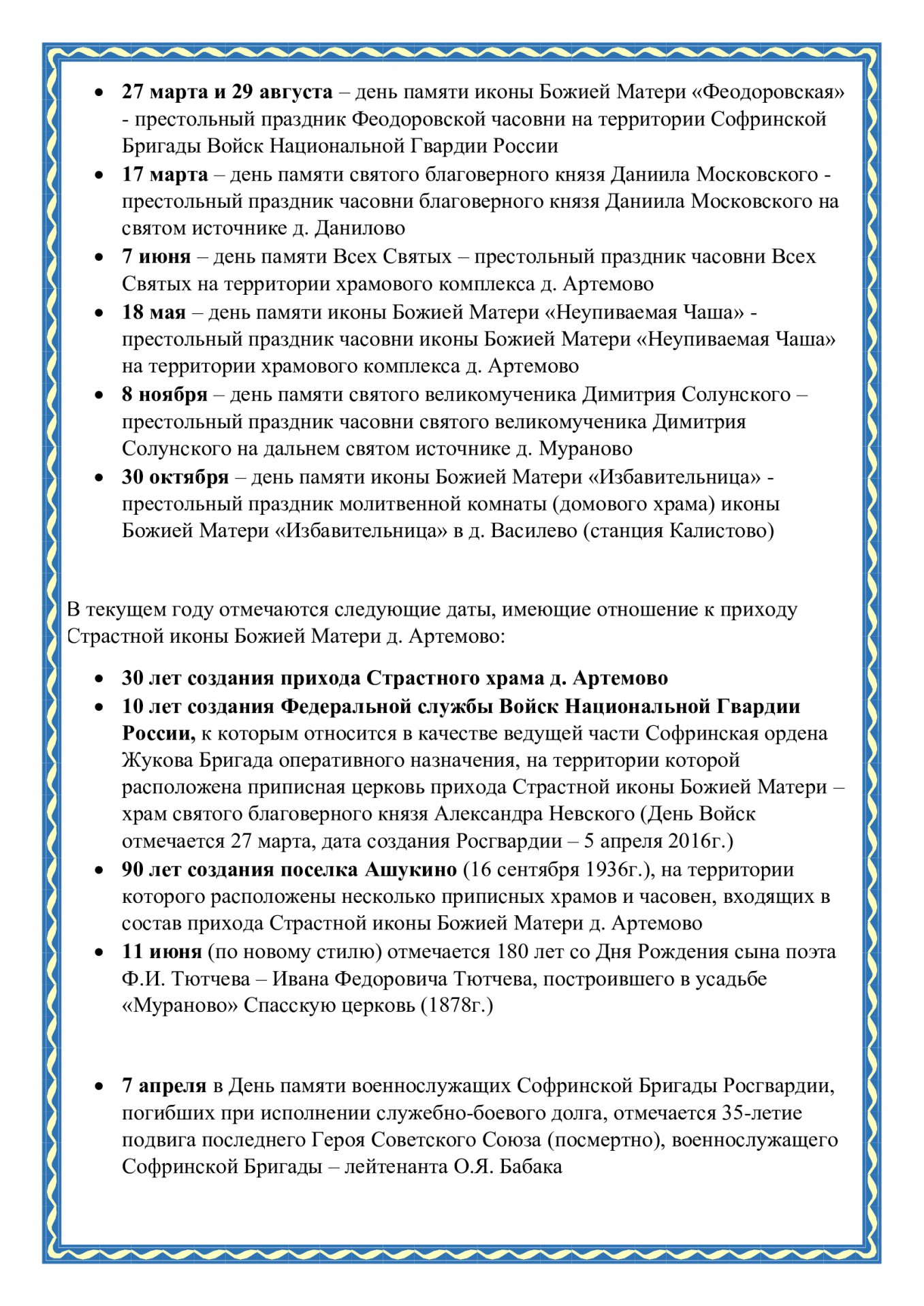 д. Артёмово Пушкинского благочиния Сергиево-Посадской епархии Русской Православной Церкви