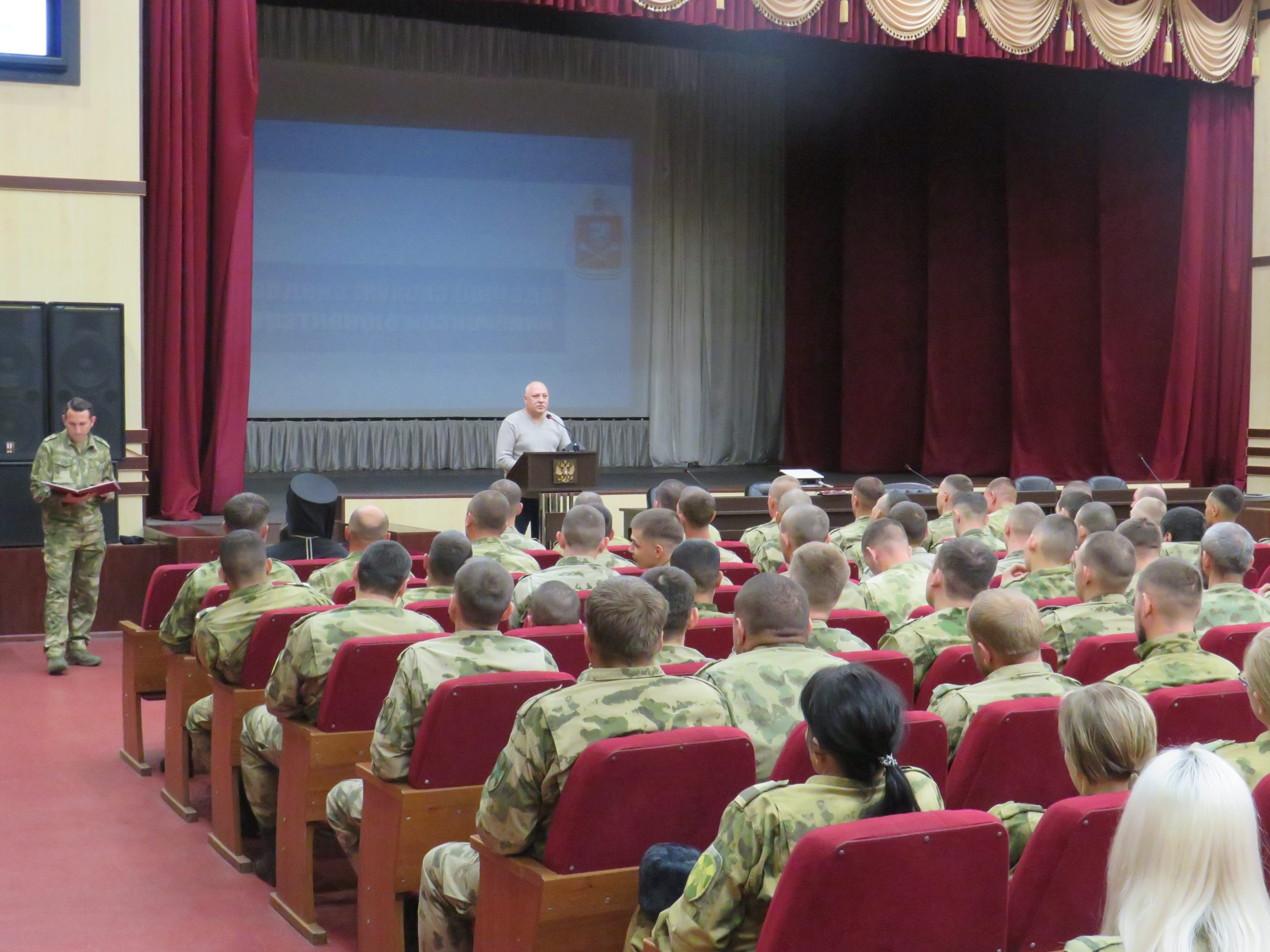 23 октября одну из наиболее значимых частей Войск Национальной Гвардии России – Софринскую ордена Жукова Бригаду оперативного назначения посетил Командующий Центральный Округом Росгвардии генерал-полковник Попов А.А. Данный приезд был приурочен к возвращению из служебно-боевой командировки значительной группы воинов-софринцев, выполнявших задачи в особом регионе. По случаю этого события в актовом зале войскового клуба прошло торжественное мероприятие, в ходе которого Командующий Округом выступил перед военнослужащими, вернувшимися в Бригаду, поблагодарил их за доблестное служение и вручил государственные награды. Со стороны Сергиево-Посадской епархии перед участниками боевых действий выступил Председатель епархиального Отдела по взаимодействию с Вооруженными Силами, правоохранительными органами и казачеством игумен Феофан (Замесов), который уже более 20 лет исполняет обязанности Ответственного за пастырское окормление личного состава этой прославленной войсковой части. Священнослужитель так же поблагодарил воинов-софринцев за достойное выполнение воинского долга и от лица Церкви поздравил их с благополучным возвращением. В мероприятии так же приняли участие Председатель Совета ветеранов Софринской Бригады подполковник Любимов В.В. и исполняющий обязанности командира части полковник Герасимов А.Н. По завершении собрания в актовом зале игумен Феофан (Замесов), а так же ветераны Бригады и представители командования провели отдельную встречу с Командующим Округа, в ходе которой обсудили различные насущные вопросы, в т.ч. касающиеся духовной работы с военнослужащими, находящиеся в зоне СВО, а так же убывающими в служебно-боевые командировки.